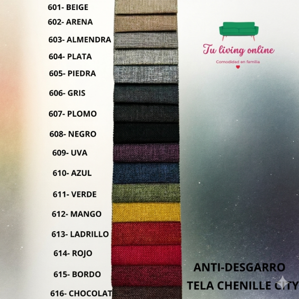 🛋️ Tapizado: Pana antimanchas o chenille antidesgarro (ver catalogo)